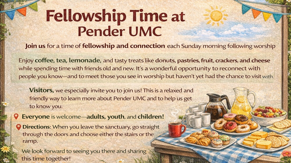 Don’t miss this chance for fun and fellowship. Invite your friends and family and join us at Pender UMC for an unforgettable afternoon!