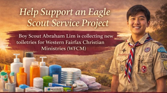 As part of his Eagle Scout service project, Abraham is collecting new toiletries for Western Fairfax Christian Ministries (WFCM) to help support individuals and families in our local community.