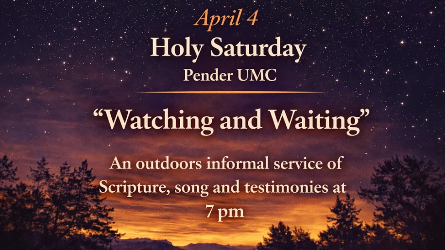 At Pender UMC, our Palm / Passion Sunday worship begins at 10:00 AM with a Palm Procession led by the children, celebrating the joy of Jesus’ arrival. As the service continues, the mood turns more reflective as we hear the Passion story from the Gospel of Matthew, remembering the events that lead to Jesus’ crucifixion.