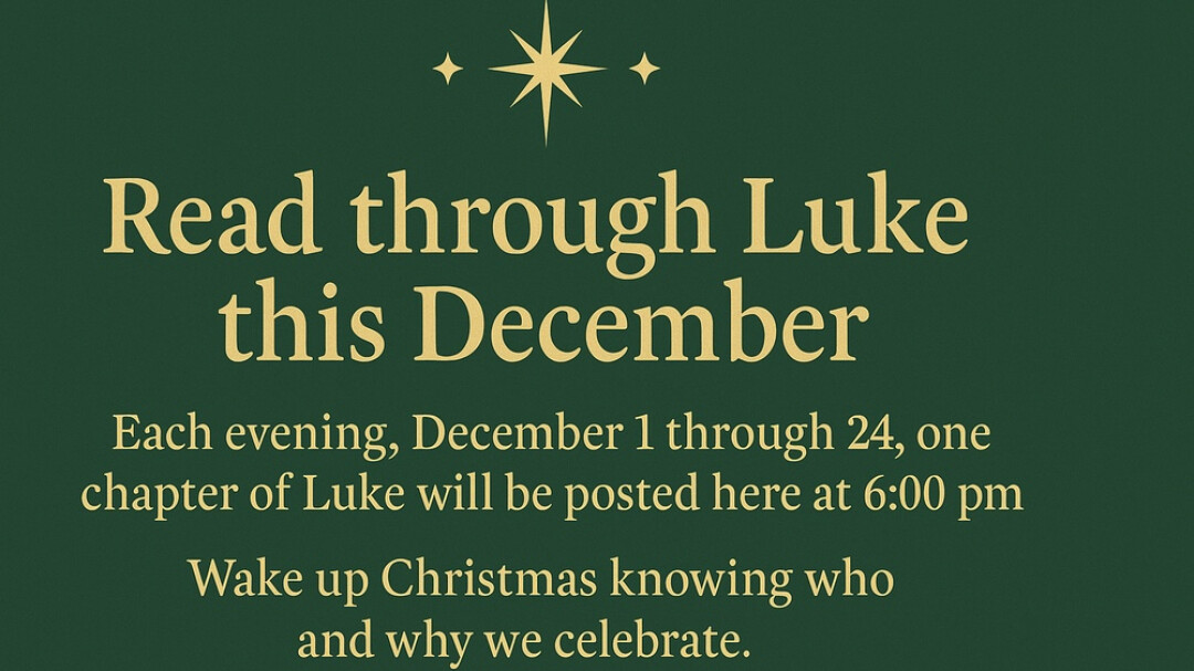 Starting December 1, we’ll be posting one chapter from the Gospel of Luke each evening at 6:00 PM, on the Pender blog. With exactly 24 chapters, Luke gives us a complete picture of who Jesus is—His birth, life, ministry, death, and resurrection.