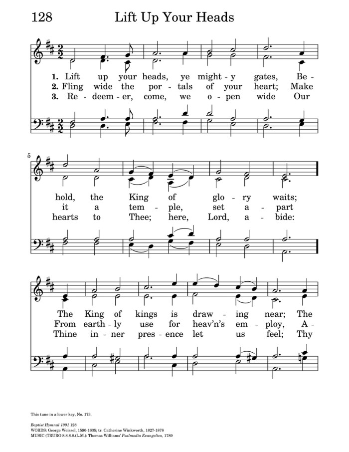 This hymn, originally written by Georg Weissel and translated by Catherine Winkworth, is a meaningful selection for the first Sunday in Advent. Its powerful lyrics and melody carry a message of hope and anticipation, reminding us to prepare for the coming of Christ.
